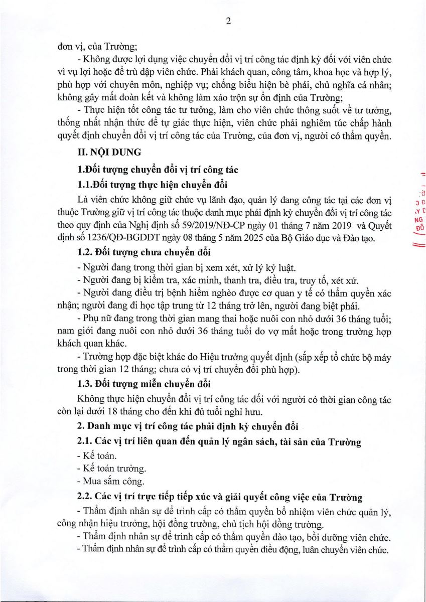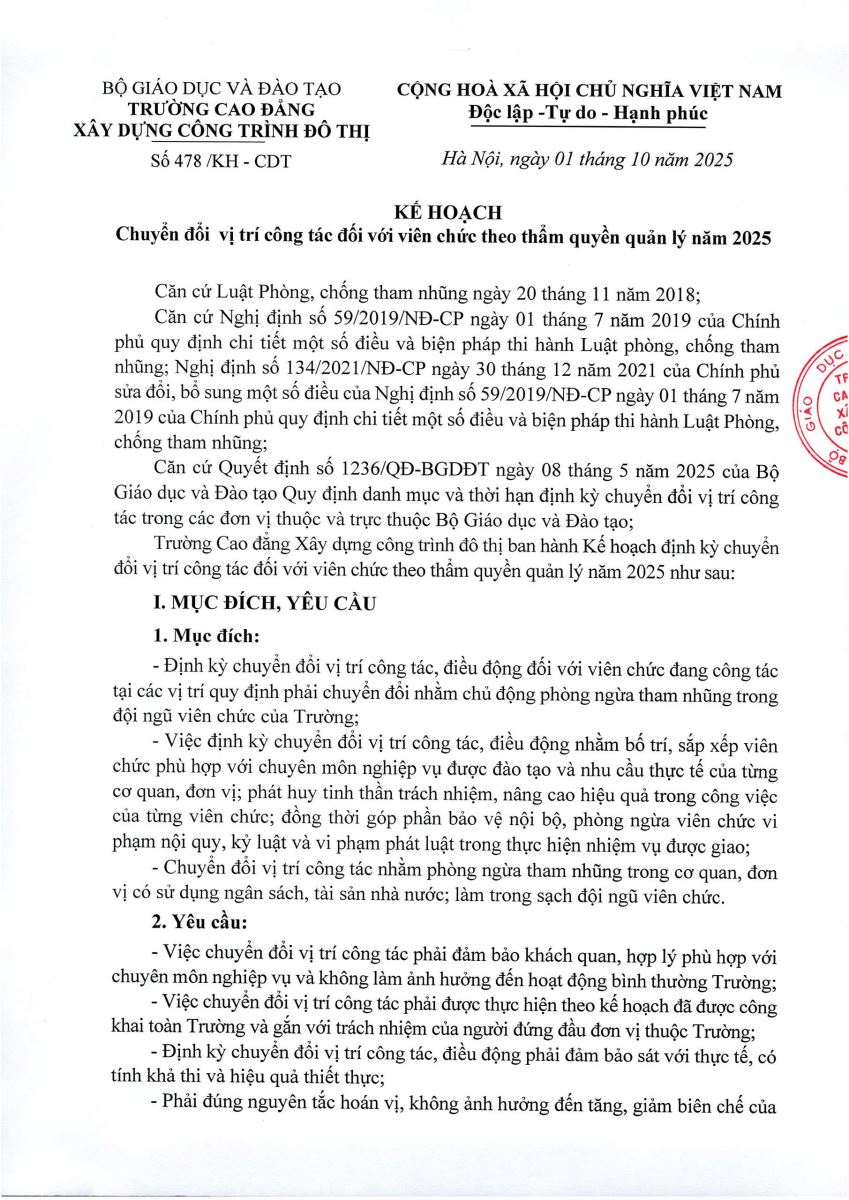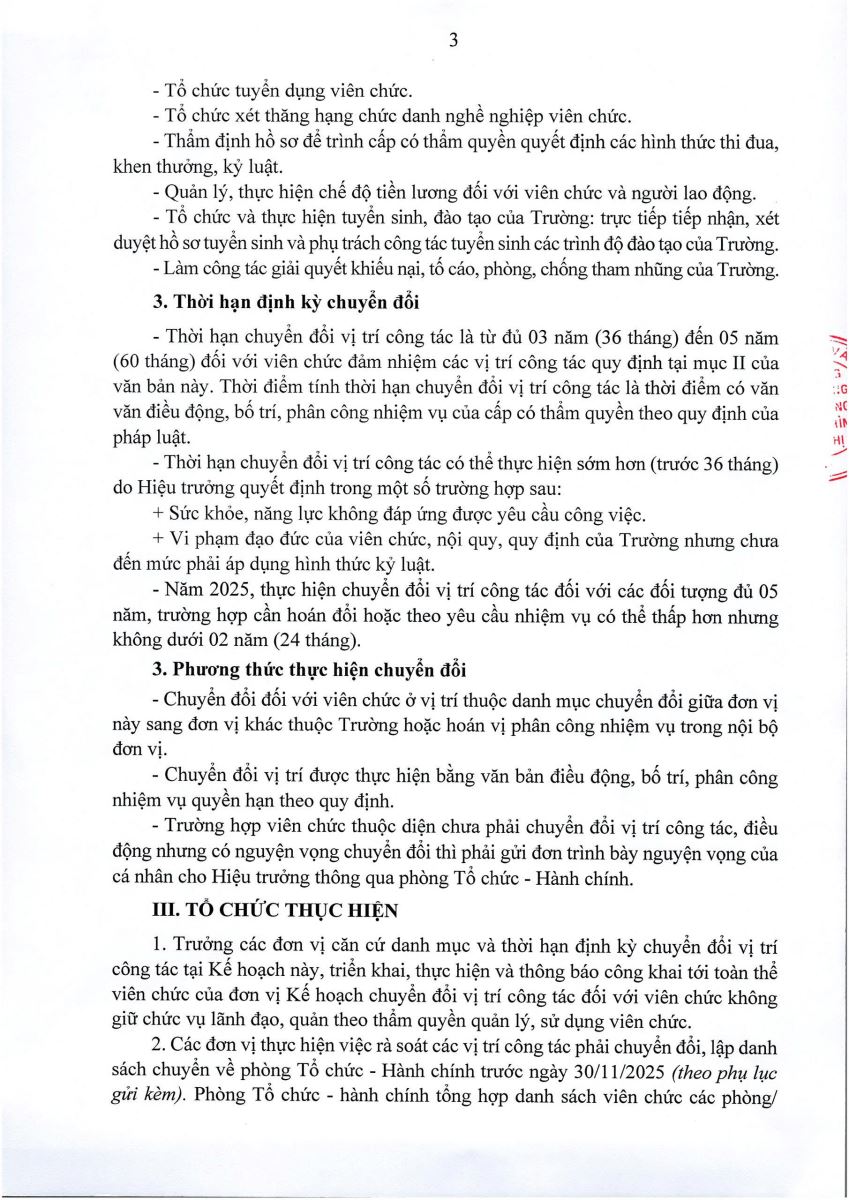 KẾ HOẠCHCHUYỂN ĐỔI VỊ TRÍ CÔNG TÁC ĐỐI VỚI VIÊN CHỨC THEO THẨM QUYỀN QUẢN LÝ NĂM 2025