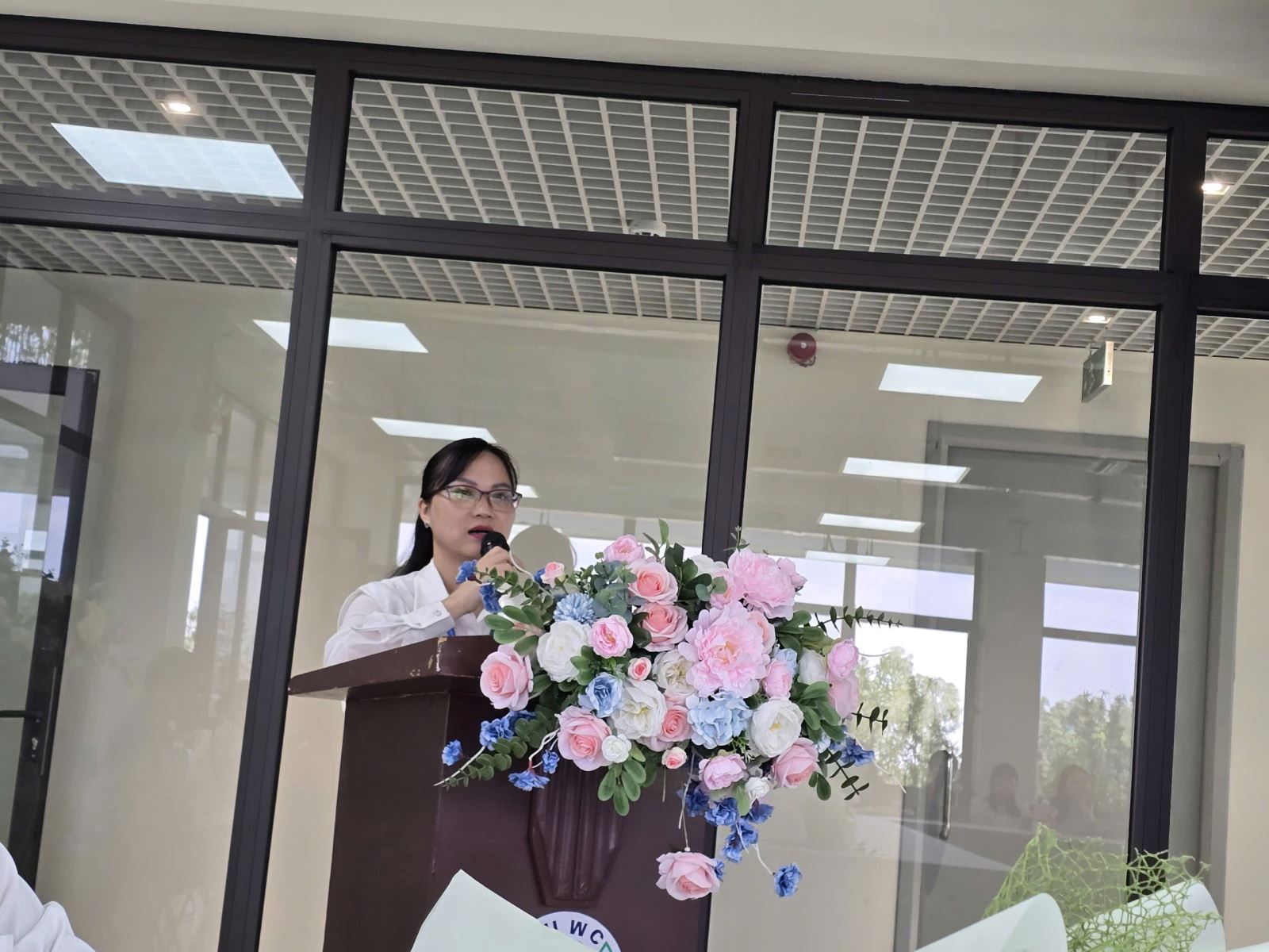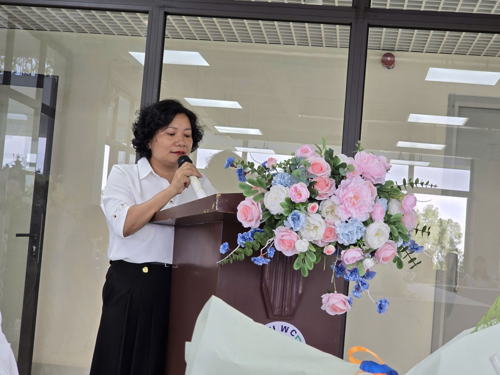 Đồng chí Bùi Hồng Huế - Bí thư Đảng ủy, Chủ tịch Hội đồng trường phát biểu chúc mừng