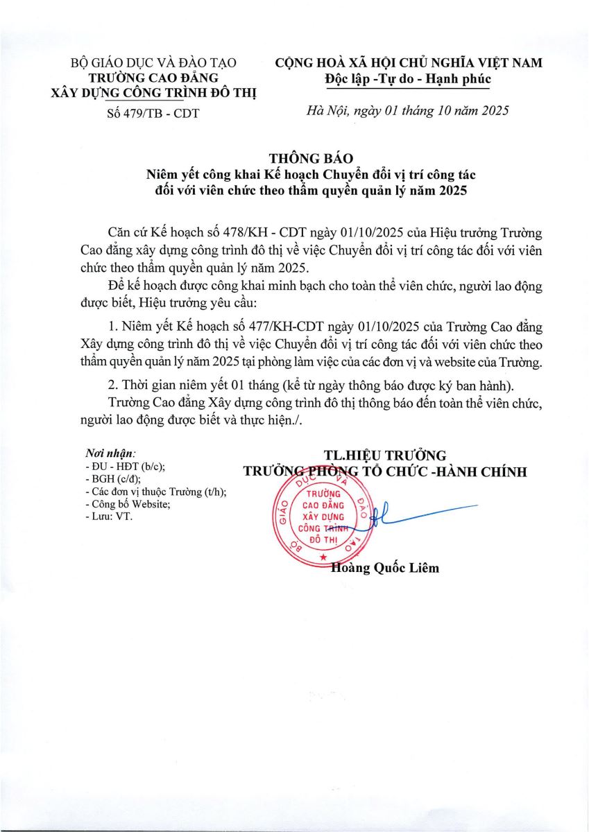 THÔNG BÁO NIÊM YẾT CÔNG KHAI KẾ HOẠCH CHUYỂN ĐỔI VỊ TRÍ CÔNG TÁC NĂM 2025