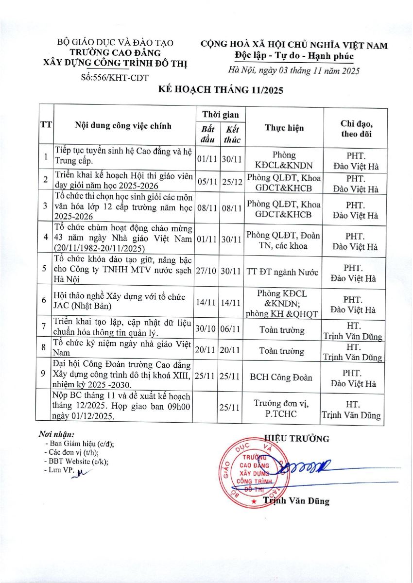 KẾ HOẠCH THÁNG 11 NĂM 2025